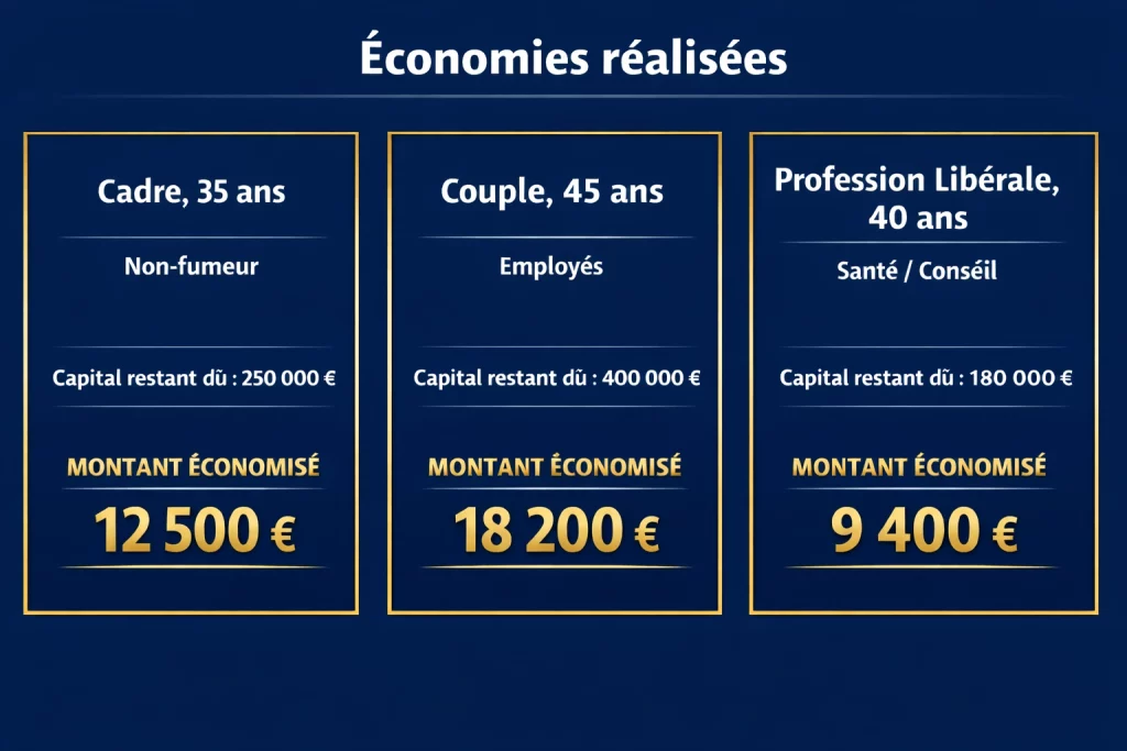 Afin de mieux appréhender l’impact concret de la Loi Lemoine sur votre budget, nous avons simulé les économies réalisables pour différents profils d’emprunteurs. Qu’il s’agisse d’un cadre de 35 ans non-fumeur pouvant économiser jusqu’à 12 500 € sur un capital de 250 000 €, d’un couple d’employés de 45 ans dégageant une marge de 18 200 € sur un prêt de 400 000 €, ou encore d’une profession libérale de 40 ans réduisant ses coûts de 9 400 € pour un encours de 180 000 €, les résultats sont sans appel. Ces exemples démontrent que, quel que soit votre statut professionnel ou le montant restant dû de votre crédit, la délégation d’assurance permet de récupérer un capital significatif tout en maintenant, voire en améliorant, votre niveau de protection actuel.